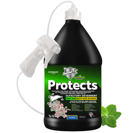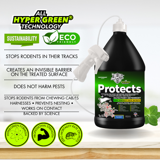 Infinity Shields Protects™ | Rodent Deterrent Spray |Hyper Green | Long-Lasting 128oz Jug | Peppermint | Single
