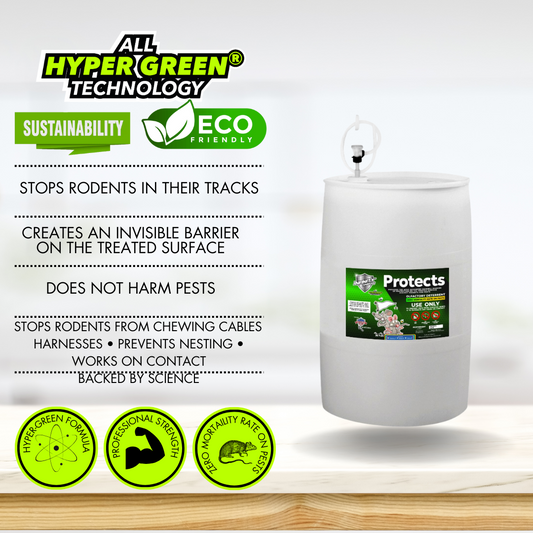 Protects - Stops Rodents In Their Track, No More Chewing Wires • Cables Or Nesting • Battle Tested & Approved In The Solid Waste Industry • Hyper Green Eco Friendly & Safe