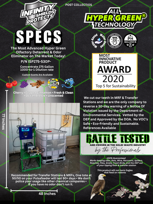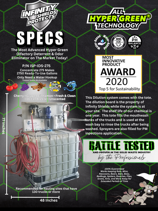 Infinity Shields Protects® is an inert olfactory deterrent & surface protectant developed, battle-tested, and proven in the Solid Waste Industry.