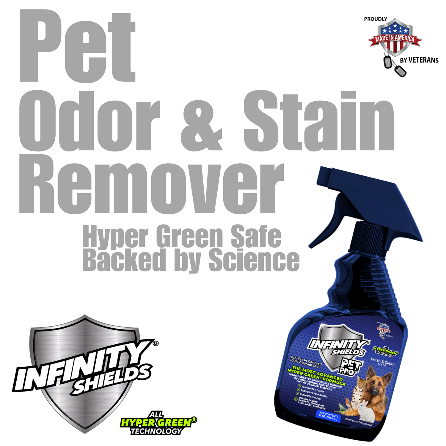 Infinity Shields® Pet Pro™ (12 oz) es ecológico, sustentable y Hyper-Green Safe....