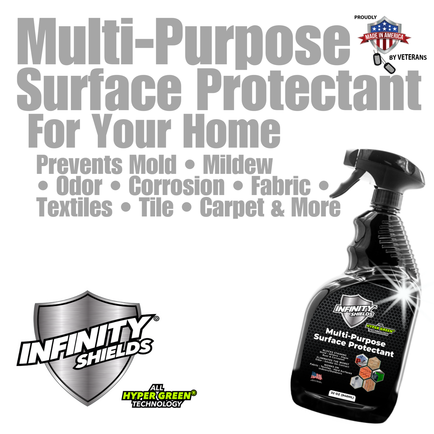 Protector de superficies de baño multiusos Infinity Shields® | Previene y bloquea las manchas de moho y hongos La mayor duración 32 oz