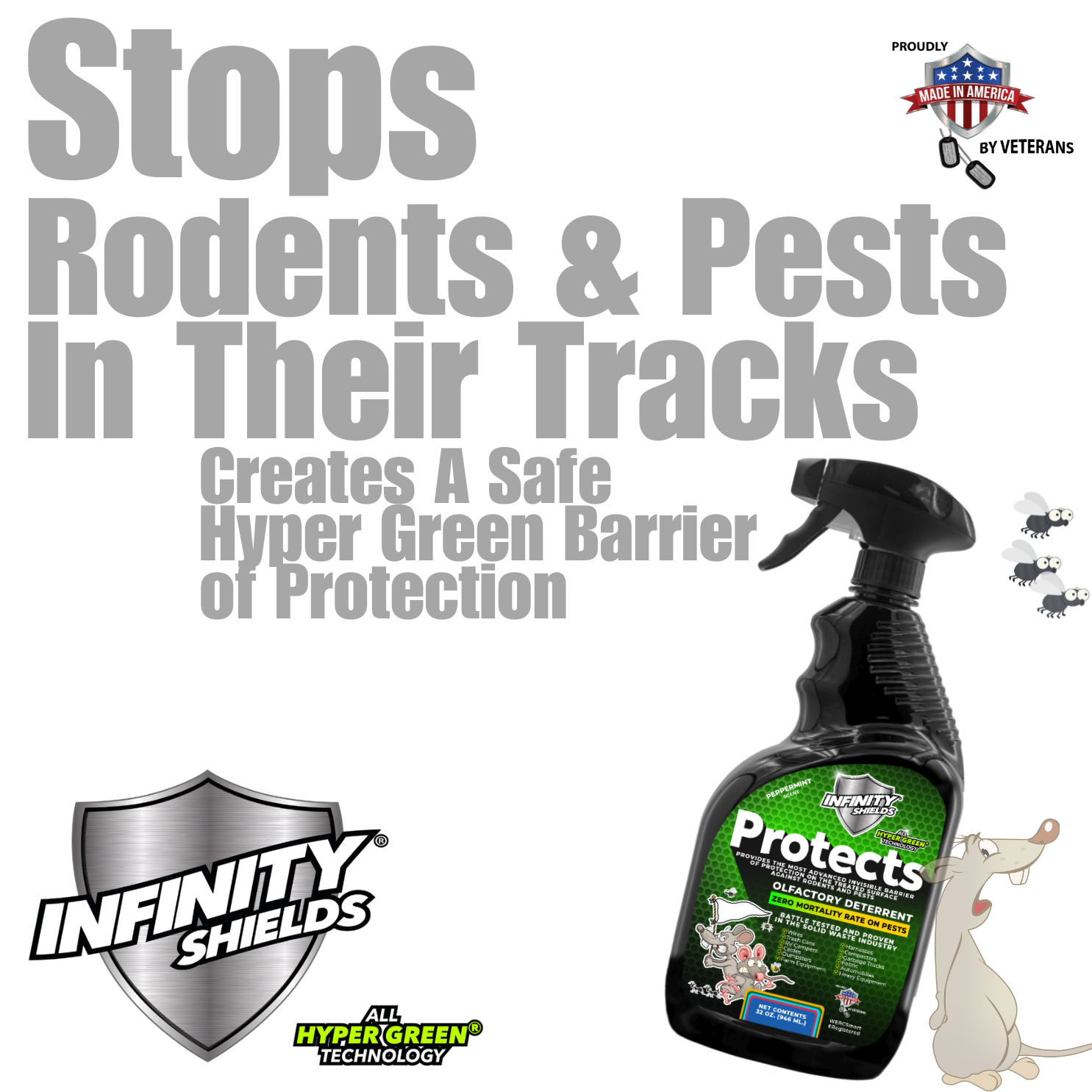 Infinity Shields protege™ | Spray disuasivo de roedores | Hiperverde | Menta de larga duración de 32 oz | Soltero