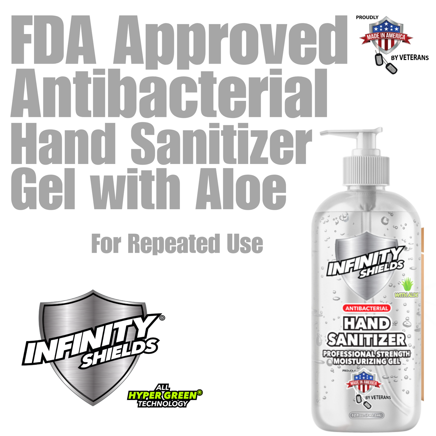 Infinity Shields® Antibacterial Hand Sanitizer, gel desinfectante para manos humectante aprobado por...